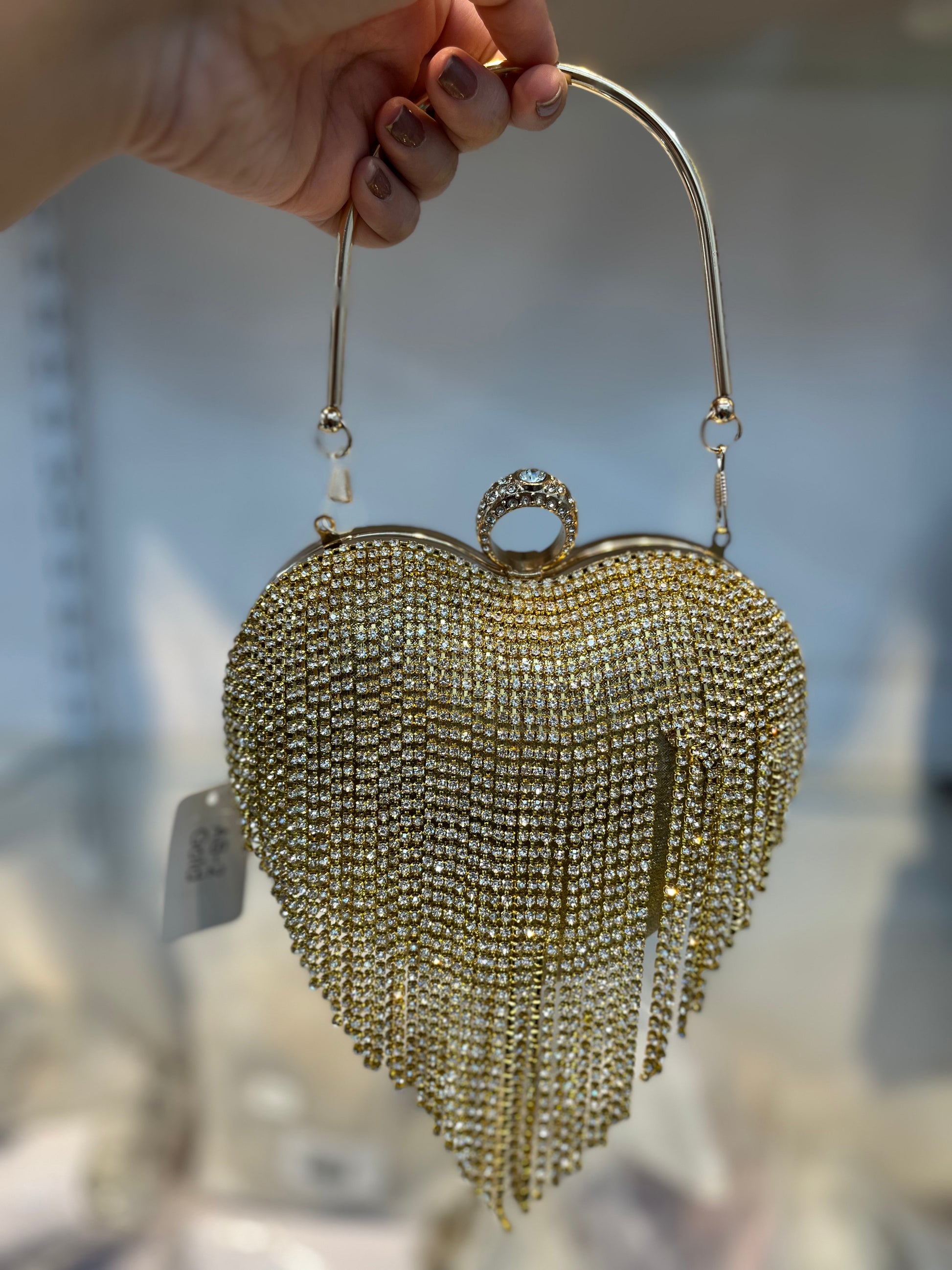 Golden Dazzle Heart Clutch | Crystal Fringe Party Handbag